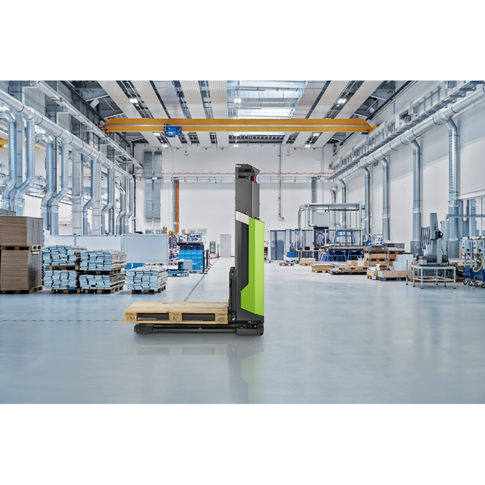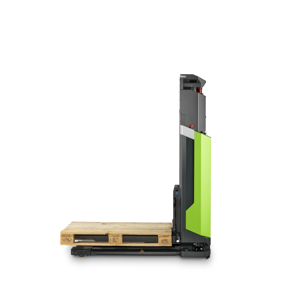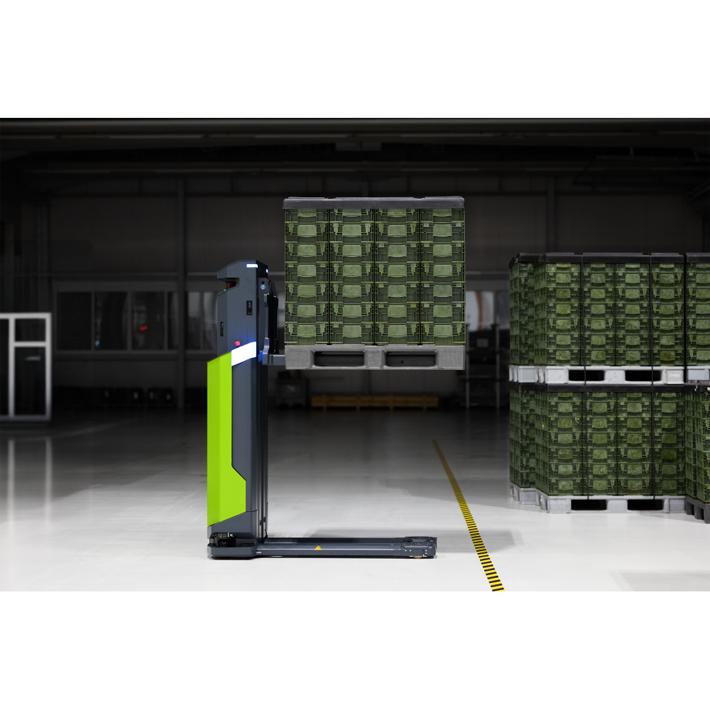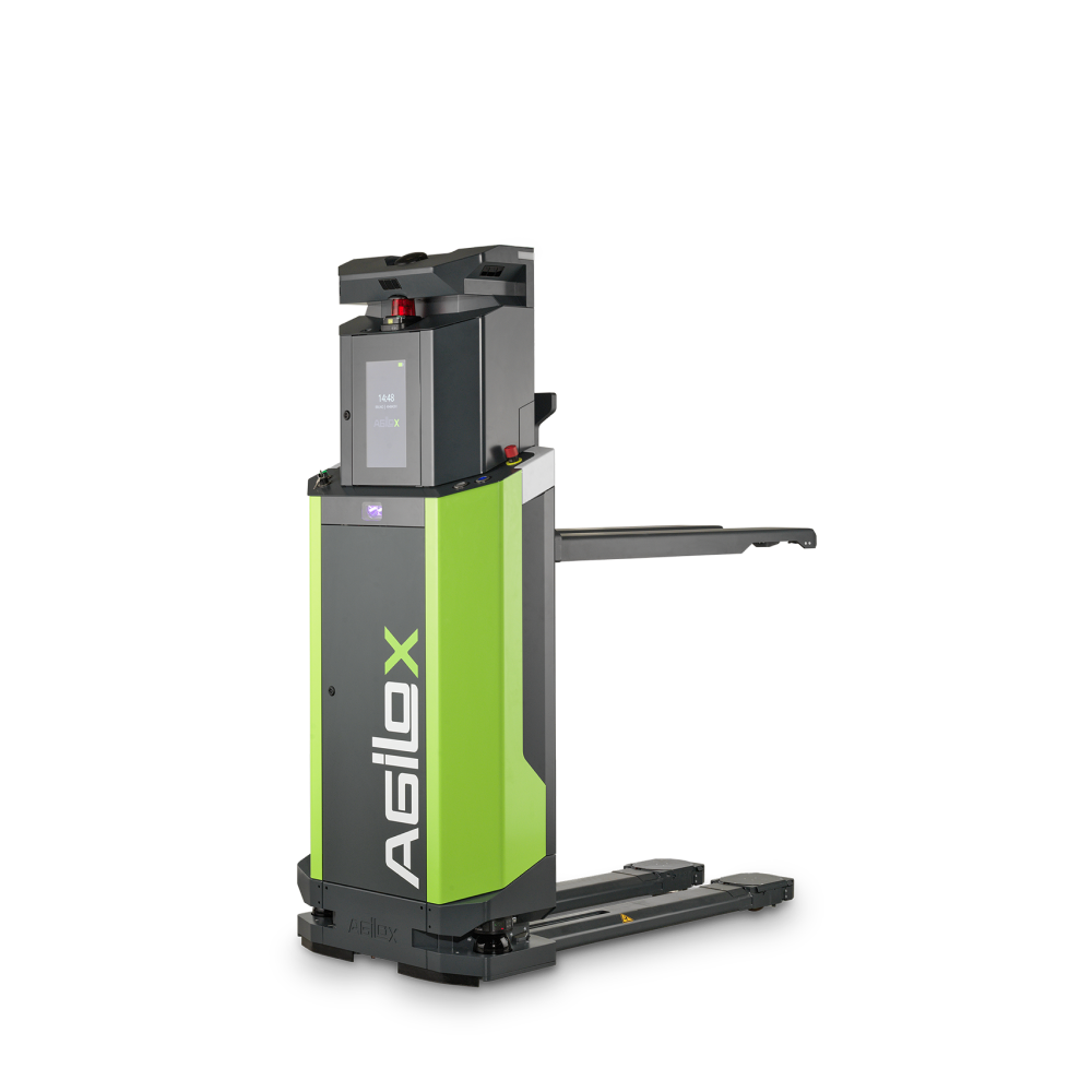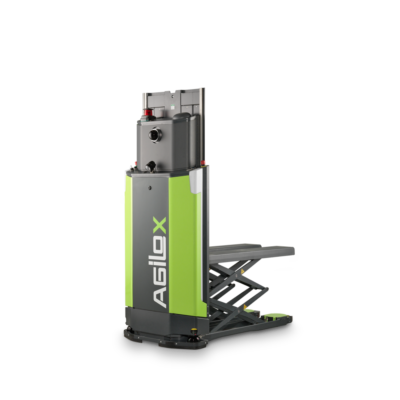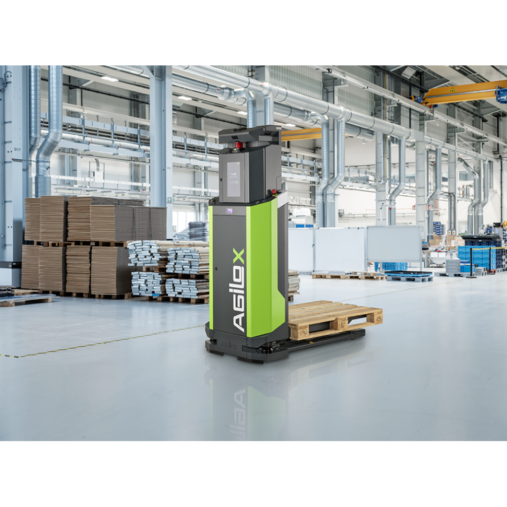 This is the upgraded ONE version without scissor lift. The AGILOX OFL expands your ability to automate the material flow. As a nimble, omnidirectional, free-lift AMR, it moves pallets and custom load carriers weighing up to 800 kg to elevated stations up to 1.2 meters high. Thanks to its intelligent navigation capabilities, it safely operates in dynamic environments and autonomously manages complex material flow processes.