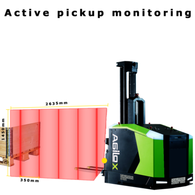 The AGILOX vehicle lowers the forks when it is on the charging station.